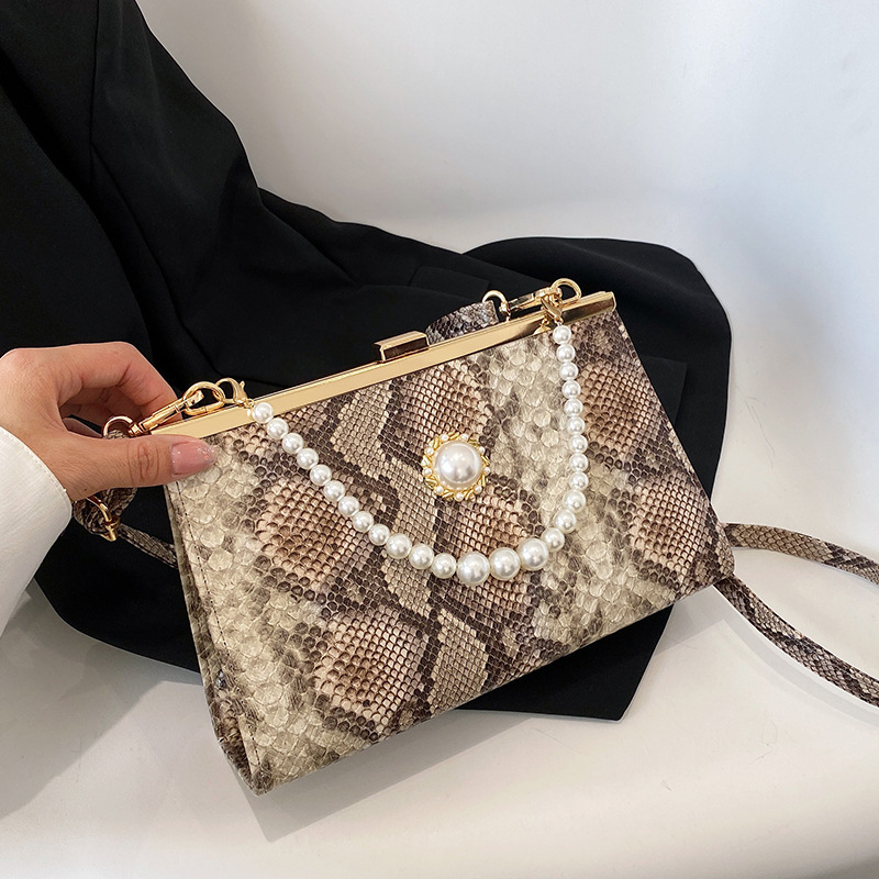 أناقة كلاسيكية: حقيبة يد (سواريه) بنقشة جلد الثعبان وسلسلة لؤلؤ فاخره أيقونية