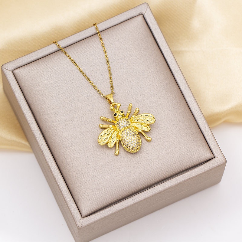 Product information: Treatment Process: Electroplating Color: TZ-8357 gold full diamond bee necklace, TZ-8357 gold full diamond bee ear studs, TZ-8357