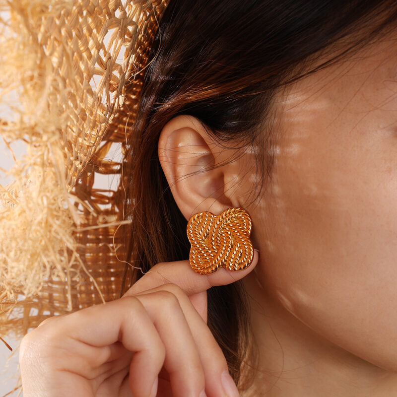 أقراط ناعمة بتصميم نبات البرسيم (4 أوراق)، منسوجة بنمط كلاسيكي وتأثير ثلاثي الأبعاد